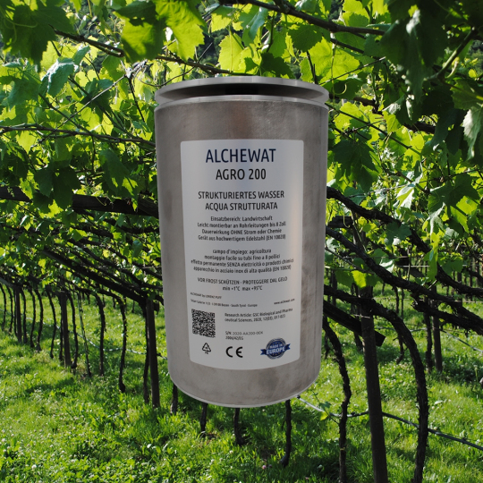 Strukturiertes Wasser durch das ALCHEWAT AGRO 200-Gerät begünstigt das Wachstum von Pflanzen, verlängert die Blütezeit und macht sie gleichzeitig abgehärteter und widerstandsfähiger gegen Schädlinge und Wetterschwankungen. Samen, die mit strukturiertem Wasser gegossen wurden, weisen eine 6-mal höhere Photonenstrahlung auf als Samen, die mit Leitungswasser gegossen wurden (Univ. Prof. Dr. phil. Herbert Klima, Atominstitut der Österreichischen Universitäten). Geeignet für Gärtnereien, Gemüse-, Obst- und Weinanbau, Golfplätze, Parkanlagen u.Ä.
