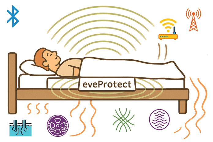 Erleben Sie neue Schlafqualität - Alchewat eveProtect ist eine hochwertige Spezialmatte, die moderne Abschirmtechnologie mit energetischen Prinzipien verbindet. Entwickelt für Menschen, die besonderen Wert auf einen ungestörten Schlafplatz legen – frei von künstlichen Störfeldern und energetischen Belastungen. Ob zu Hause oder auf Reisen: Die einfach unter der Matratze platzierbare Matte bietet physikalischen Schutz vor elektrischen Wechselfeldern (NF), hochfrequenten elektromagnetischen Feldern (HF) sowie wahrgenommenen natürlichen geodätischen Störzonen – ganz ohne Strom, Erdungskabel oder Elektronik.